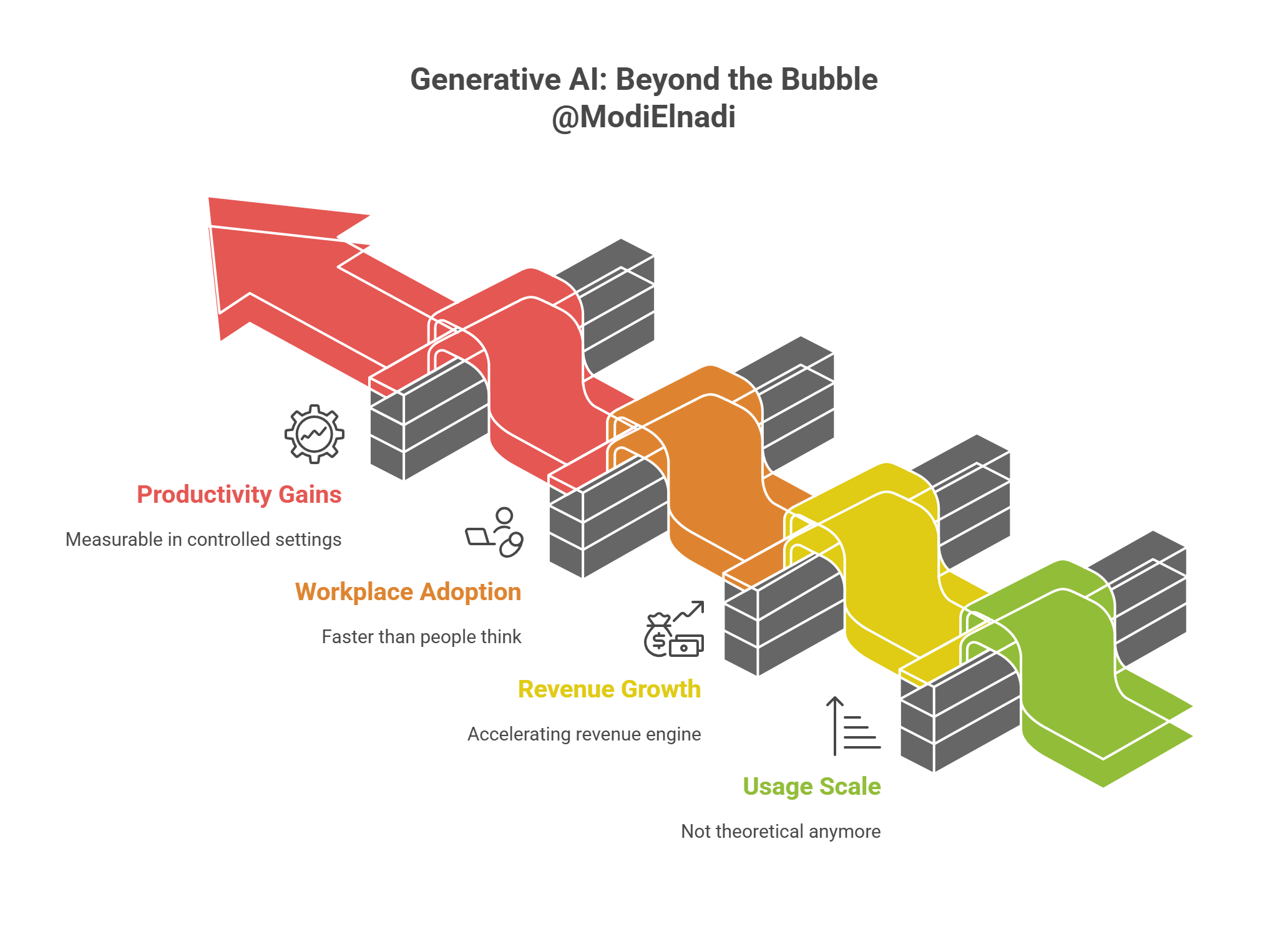 But the counterweight is now undeniable: mass adoption, fast-forming revenue, and measurable productivity uplift thanks to new technology. This looks like a platform buildout (cloud/mobile-style), not an empty speculative loop. (TechCrunch)