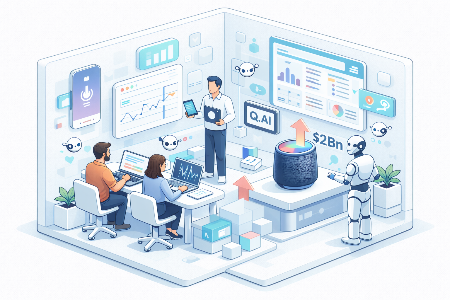 Q.ai is positioned around audio-focused machine learning that helps devices interpret speech under real-world constraints: whispering, background noise, and challenging acoustics. Reporting also links Q.ai to “silent speech” style interfaces using facial micromovements, which could enable private input to wireless assistants through earbuds or glasses.